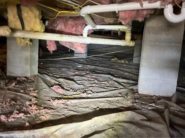 This crawl space was exposed to what we like to call "the open earth." When your crawl space is exposed to dirt, it allows for moisture to rise up through the soil, and attaches to the wood, concrete walls, and anything else that you may have in your crawl space. Unfortunately, the moisture in this crawl space grew to mold on their wooden sil plate. To start this renovation, we replaced their sil plate. We then placed our CleanSpace liner all across the walls and floor of this crawl space, sealing it from the earth. The Clean Space liner, similar to a pool liner, is heavy duty and effective at blocking out moisture, bugs, cold air, dirt, and anything else unwanted in your crawl space. We finished by installing a SaniDry Sedona dehumidifier and a Condensation pump. The SaniDry Sedona is one of our most coveted products, able to take moisture from the air and collect it in large quantities at a proficient rate. The condensation pump hooks up to the SaniDry Sedona and pumps out all the water it collects.