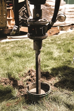 Grout is simultaneously poured to fill the hole created by the helical pile system, which creates a uniform grout column because of the even disbursement of identical displacement plates. The grout reservoir gives needed stability to the entire system when surrounding soils are not a sufficient anchor.