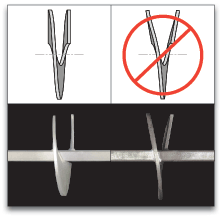 Conversely, blades that are not a true helix shape are often formed to a 'duckbill' appearance. These plates create a great deal of soil disturbance and do not conform to the helix geometry requirements of ICC-ES AC358 since their torque to capacity relationships are not well documented.