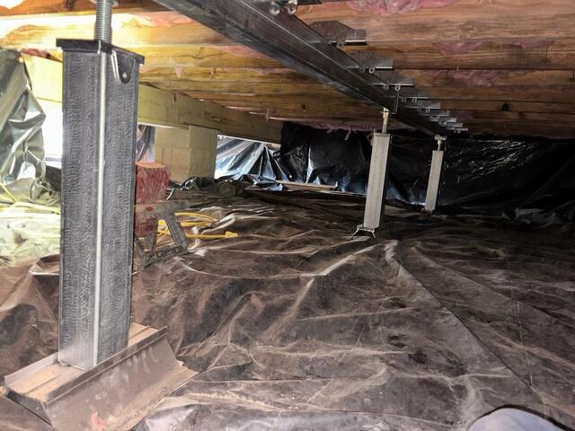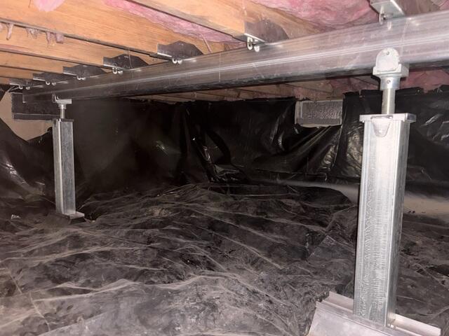 We recently completed a foundation repair in Kings Mountain, KY, for a homeowner in 2026. Ten years ago, when the house was just ten years old, we first came in contact with the homeowner. They called us about the humidity levels in their crawl space, and we suggested that they should install an encapsulation system in order to keep moisture at bay, which would help save them troubles down the road. The homeowner opted not to encapsulate, but they said they would give us a call if they ever ran into trouble with their foundation in the future. Fast forward to 2026, and the homeowner gave us a call like they said they would. As it turned out, moisture had taken its toll by softening the floor joists in the crawl space. Addiotionally, the columns in the space had settled a bit, accelerating the rate of floor sagging. The floorboards creaked, gaps appeared in the upstairs cabinets, and internal doors stiffened. We ended up installing our SmartJack crawl space posts with steel main beam support to help lift the sagging floor joists back up. This system helped close the gaps upstairs, evened out the floorboards, and loosened up the internal doors. We also installed our SaniDry Sedona dehumidifier to help better control the moisture problems in the crawl space. If the homeowner had us install our encapsulation system originally back in 2016, they may have saved themselves from needing our SmartJack system. On top of that, they would've had cleaner air to breathe and a top notch space to store items in.