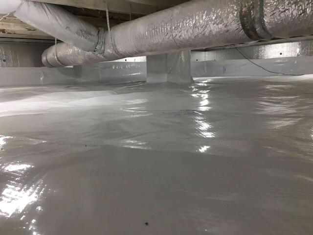 We encapsulated this crawl space in Liberty, Kentucky, to prepare this foundation for a long future. We started by wrapping the walls with our SilverGlo insulation panels, and then we wrapped the space with our CleanSpace vapor barrier. Lastly, we installed both a SmartSump sump pump and a SaniDry Sedona dehumidifier to keep water out and to keep the air completely dry all the time.