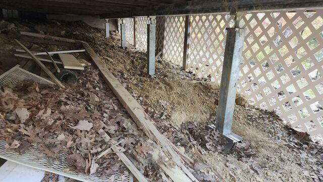 To reinforce the structure, we installed SmartJacks under the floor joists to level and stabilize them. Additionally, we added a separate row of SmartJacks beneath the deck to provide support for the sunroom above.