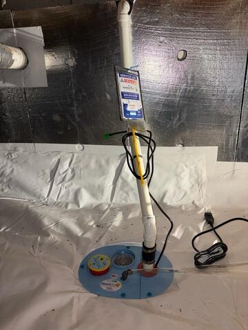 To fix the problem for good, our team performed a full crawl space encapsulation. We installed a CleanSpace® vapor barrier across the floor and walls to permanently separate the crawl space from the earth. Underneath, drainage matting allows water to drain properly toward a new SuperSump® pump system, keeping the area dry even during heavy rains.