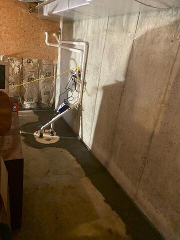 With the system in place, the homeowner now has a dry, protected basement and peace of mind knowing their home is safeguarded against future water intrusion.